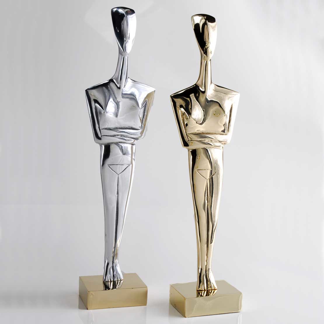 Male giant thin body Cycladic made of brass or aluminum on brass base (36,0×9,0x5,5 cm)