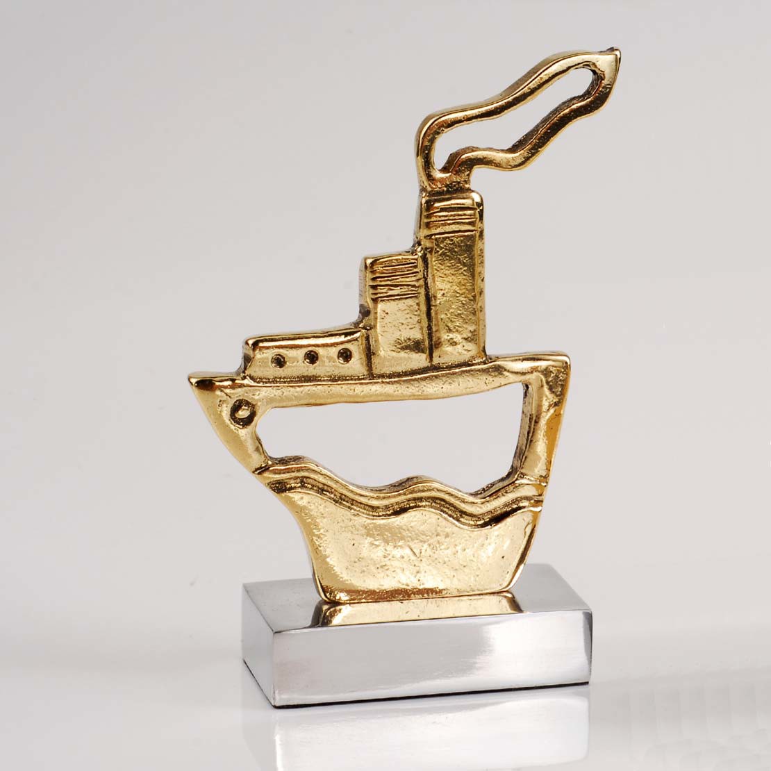Large brass Vapori boat with funnel on aluminium base (11,8×8,2×3,0 cm)