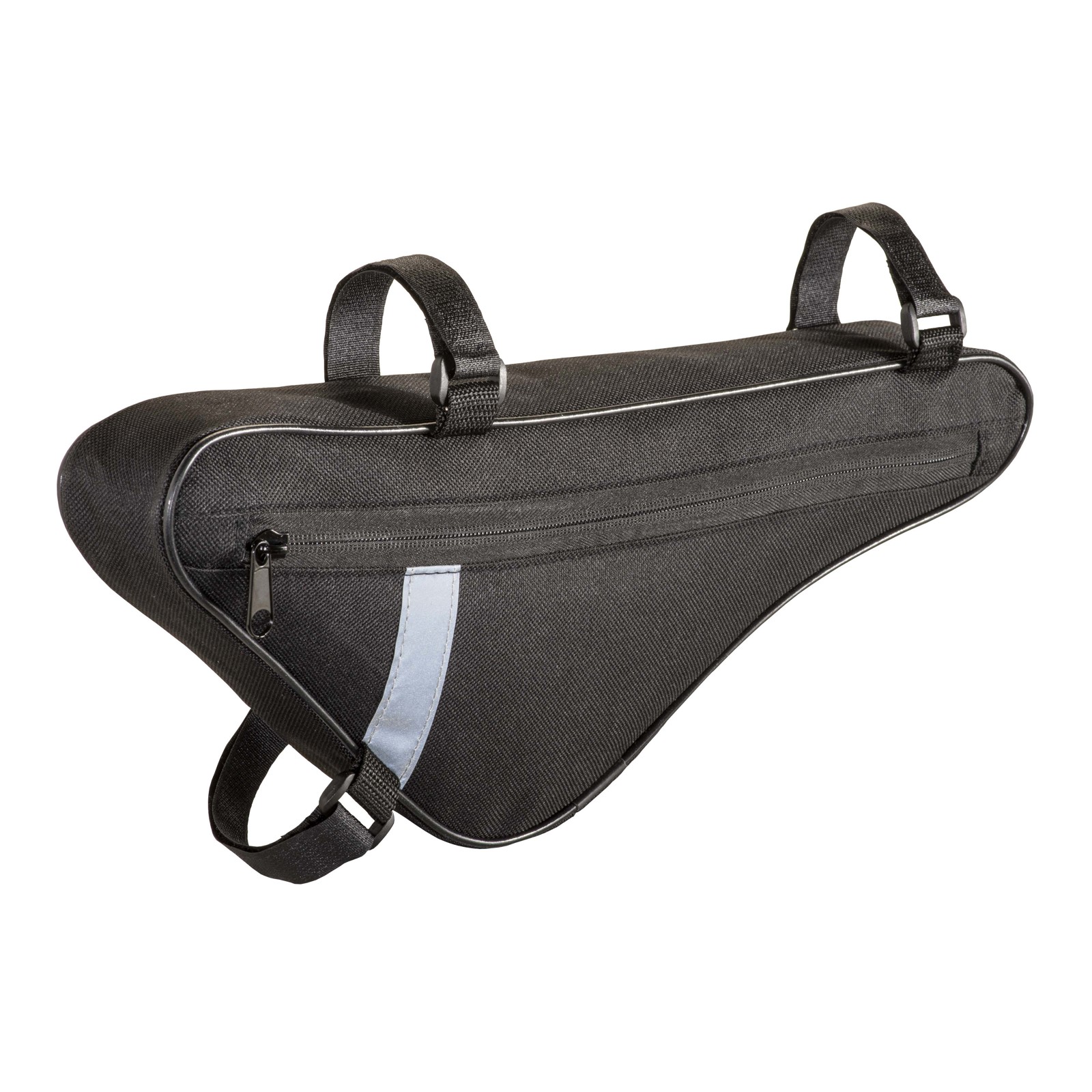 Fahrradtasche aus 600D-Polyester, mit Klettverschlussriemen, ideal zum Befestigen der Tasche am Rahmen und reflektierendem Band