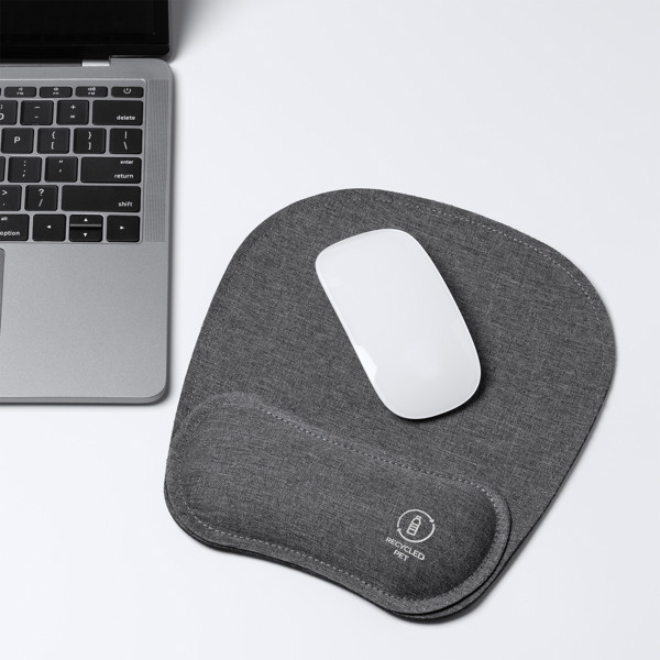 Das Mauspad aus RPET-Material und mit Kissen ist eine umweltfreundliche und bequeme Option für die Verwendung mit der Maus Ihres PCs oder Laptops. Außerdem hat es einen rutschfesten Boden aus Gummi, der dafür sorgt, dass es auf der Arbeitsfläche an Ort und Stelle bleibt. Die Oberseite des Mauspads besteht aus weichem und strapazierfähigem RPET-Gewebe, das eine glatte und hochwertige Oberfläche für die Bewegung der Maus bietet.Die integrierte Polsterung des Mauspads bietet zusätzliche Unterstützung für Handgelenk und Unterarm und sorgt für Komfort bei langer Nutzung der Maus.