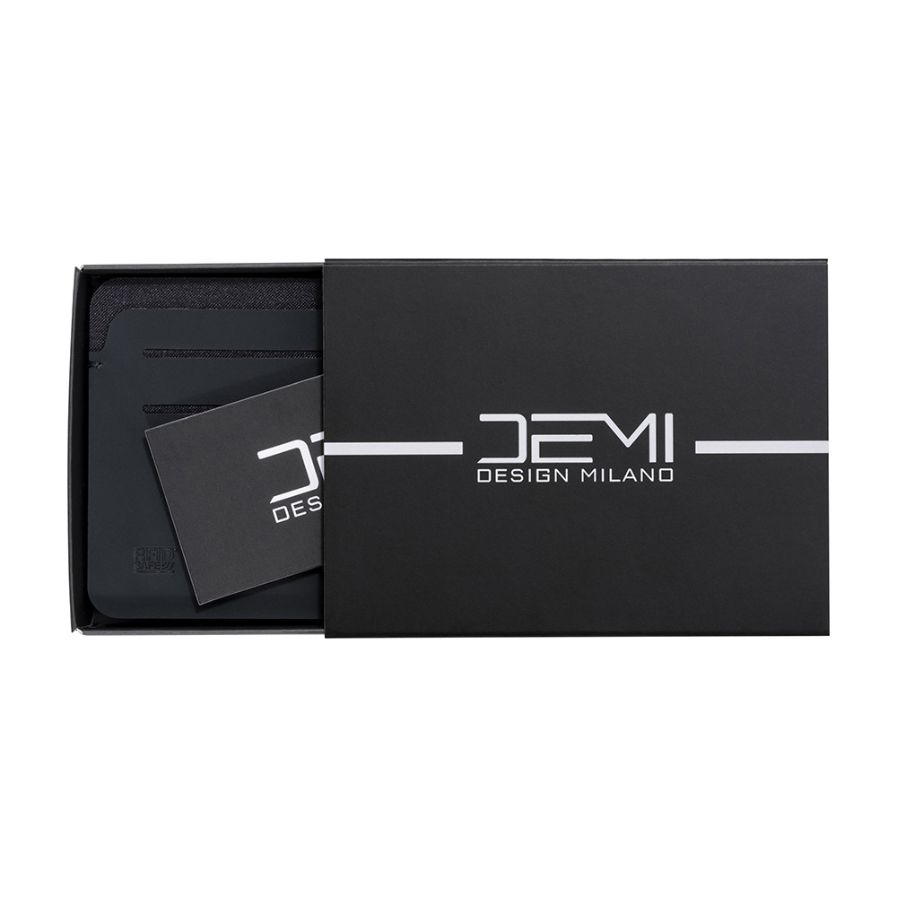 RFID-Kartenetui aus weichem PU. Mit sechs Kartenfächern und RFID-Logo. Wird in einer Box mit DEMI-Logo geliefert