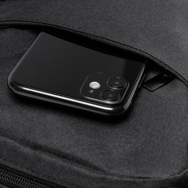 Umhängetasche aus RPET-Polyester. Hauptfach mit 2 Innentaschen und einer Fronttasche. Verstellbarer Tragegurt.