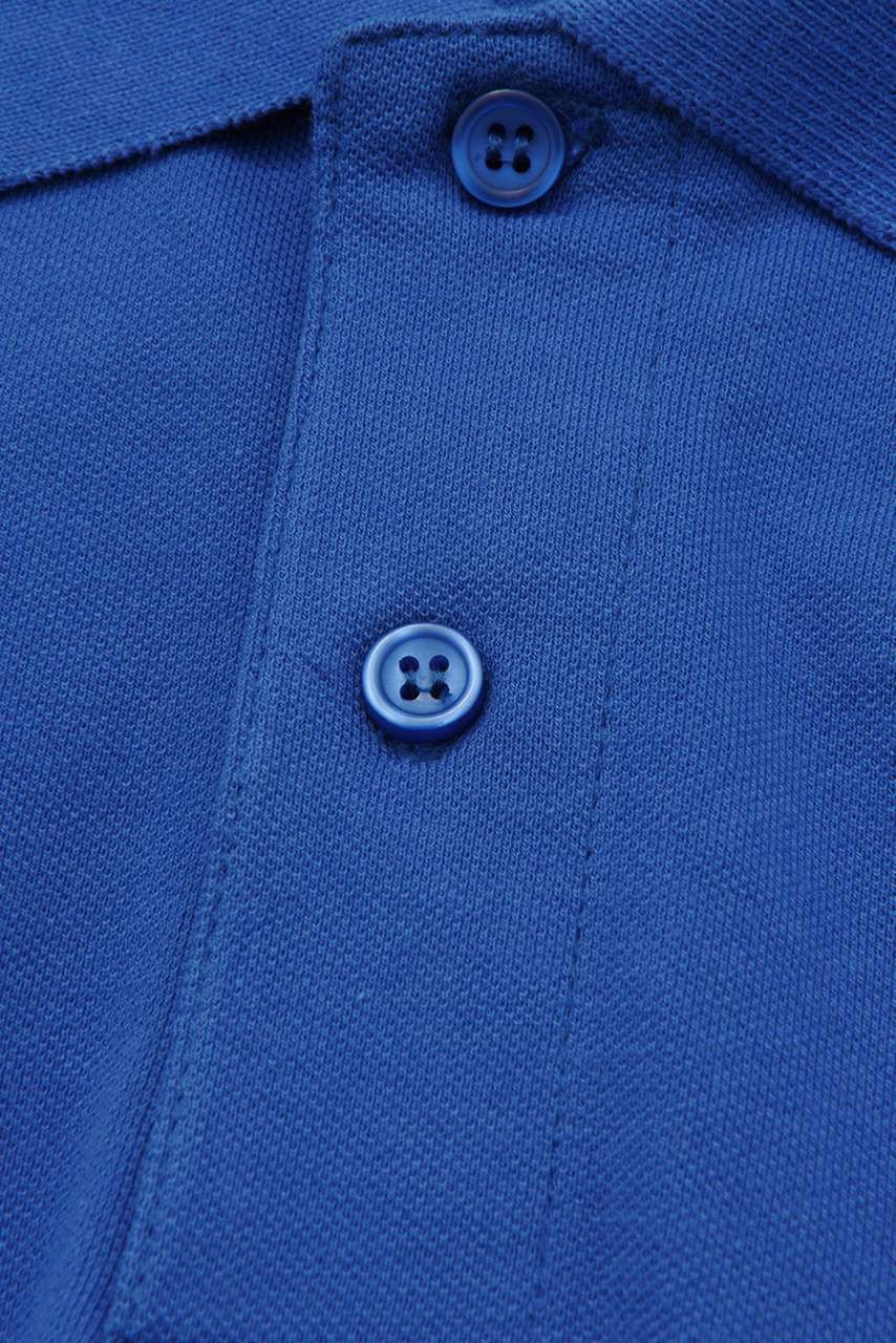 Qualität 100% gekämmte Baumwolle Ringspun Kragen und Ärmelbündchen aus Rippstrick 1X1 Nackenband Stil Knopfleiste mit 2 farblich abgestimmten Knöpfen Seitennähte