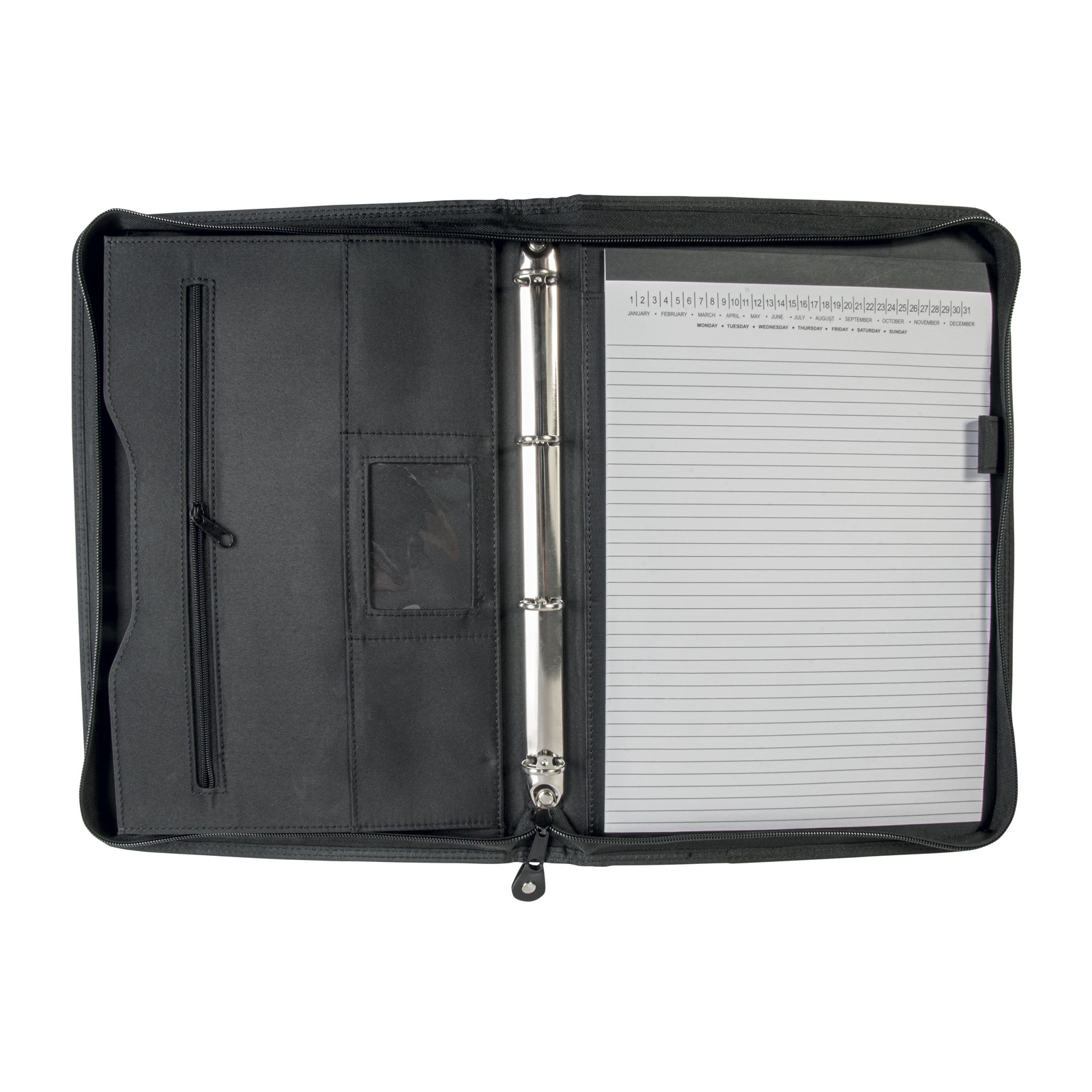 Χαρτοφύλακα από μικροΐνες και δερματίνη. Δακτυλιωτό ντοσιέ. Εσωτερικές τσέπες, σημειωματάριο 20 φύλλων και θήκη για στυλό