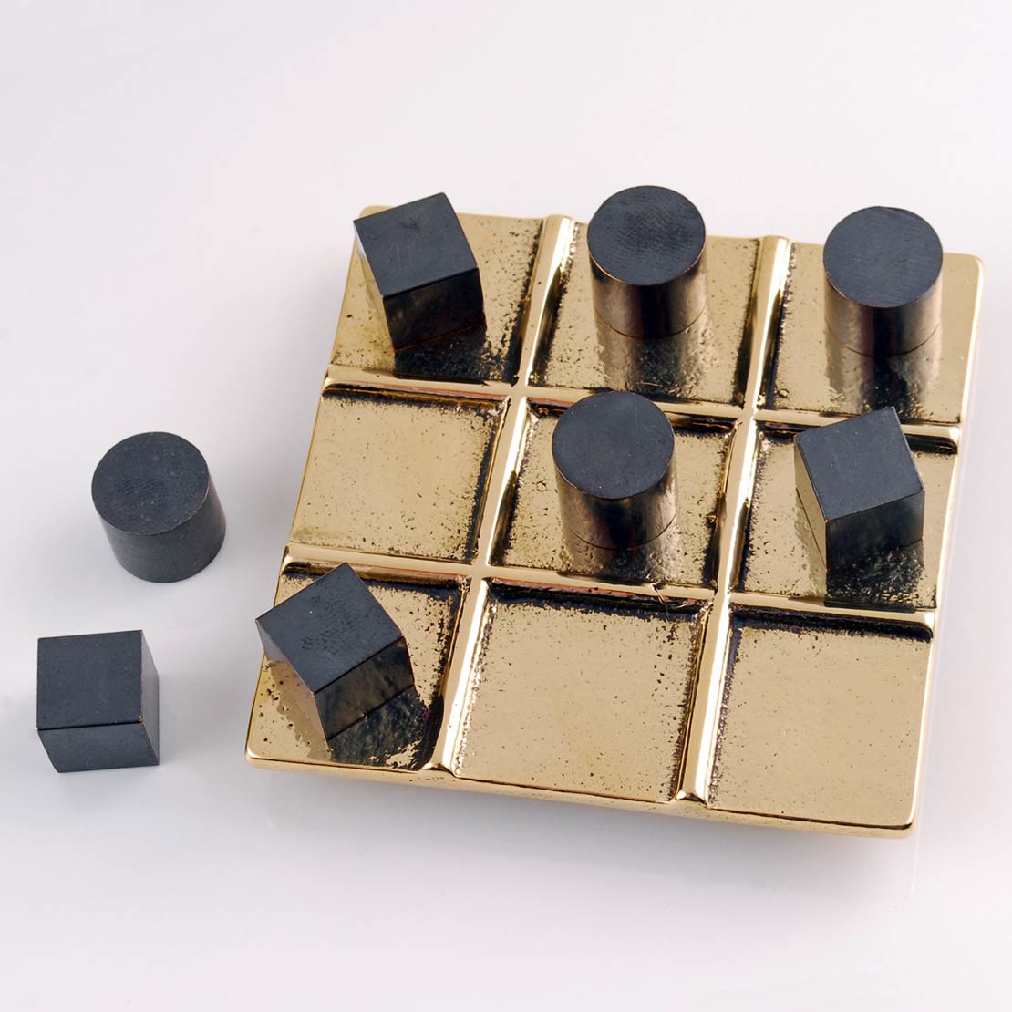 Τρίλιζα μικρή ίσια ανάγλυφη από αλουμίνιο με πόδια και πιόνια κύβους και κυλίνδρους από ορείχαλκο (7,5×7,5×2 cm)