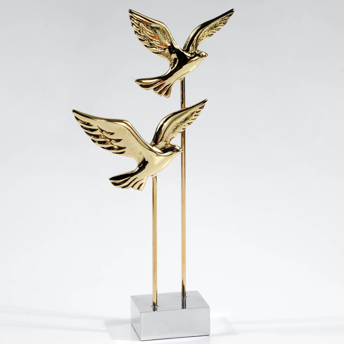 Περιστέρια που πετούν – Γλυπτό από μεγάλο & μεσαίο πουλί, από ορείχαλκο σε βάση αλουμινίου (27,5×13,5×4,5 cm)