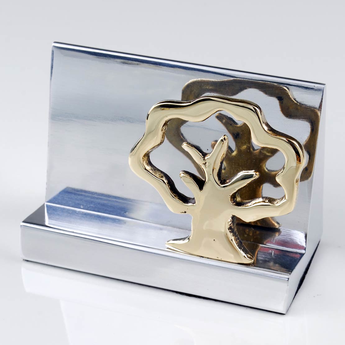 Καρτοθήκη “Δέντρο φύλλωμα” από αλουμίνιο με ορειχάλκινο στοιχείο (9,5×6,5×4,5 cm)