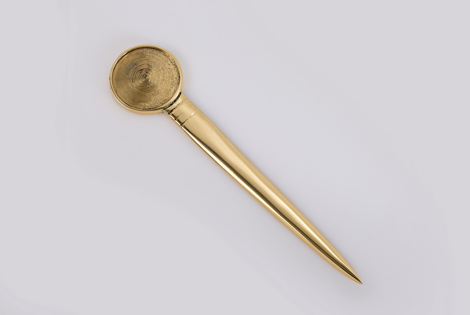Χαρτοκόπτης μπρούτζινος με στρογγυλή υποδοχή για ορειχάλκινο νόμισμα βεργίνα ή άλλο επιλογής σας (διαμέτρου 3,5 cm)