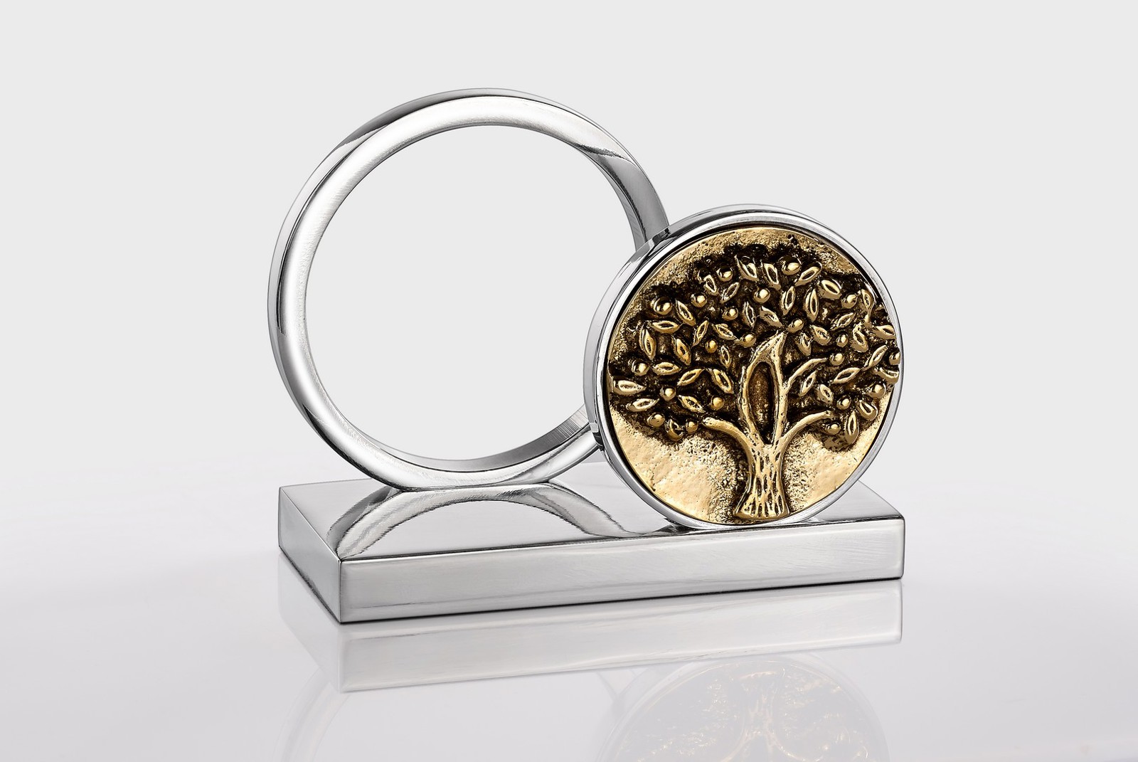 Καρτοθήκη κύκλοι από αλουμίνιο με ένθετο δέντρο ζωής σε μπρούτζο (9×7,3×4cm)