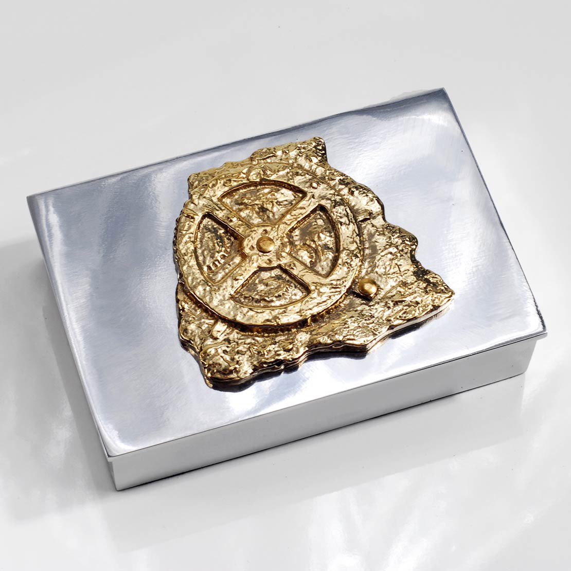 Κουτί παραλληλόγραμμο λείο από αλουμίνιο διακοσμημένο με ορειχάλκινο “Μηχανισμό των Αντικυθήρων” (10,9×7,3×3 cm)