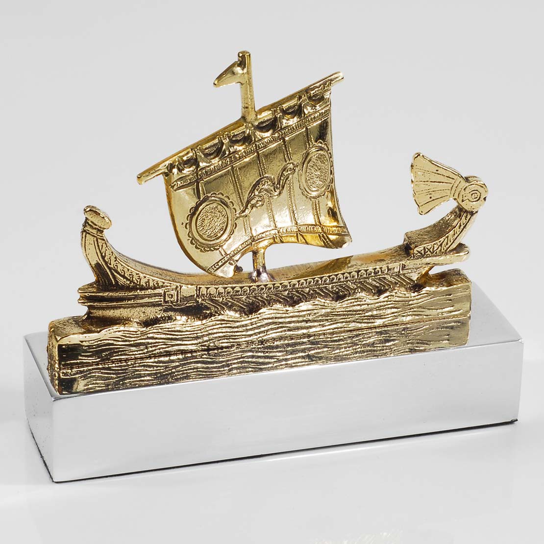 Καράβι τριήρης τρισδιάστατη από ορείχαλκο πάνω σε βάση αλουμινίου (8,8×10,5×3,0 cm)