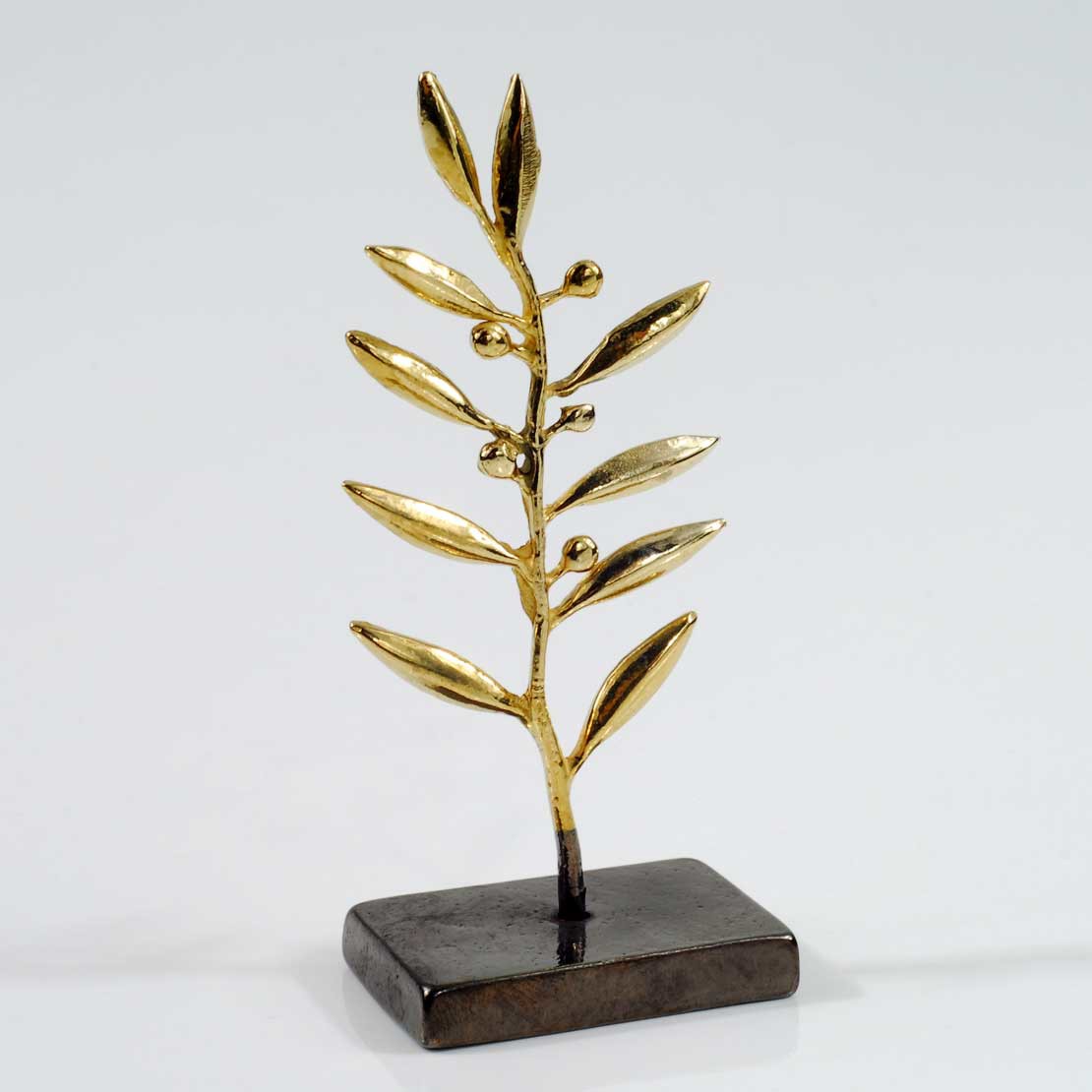 Κλαδάκι ελιάς μίνι από ορείχαλκο πάνω σε οξειδωμένη ορειχάλκινη βάση