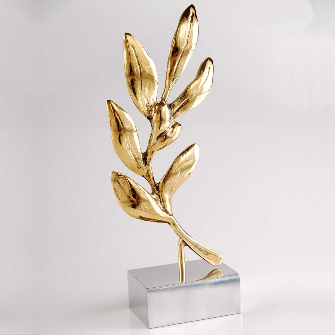 Κλαδί ελιάς ανάγλυφο μεγάλο λοξό από ορείχαλκο σε βάση αλουμινίου (18,8×9,0x4,5 cm)