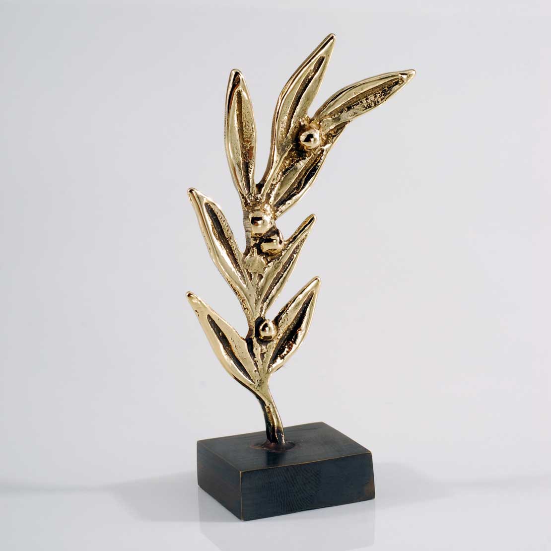 Κλαδάκι ελιάς λεπτό μυτερό λοξό από ορείχαλκο πάνω σε οξειδωμένη ορειχάλκινη βάση (10,5×5,0x3,0 cm)