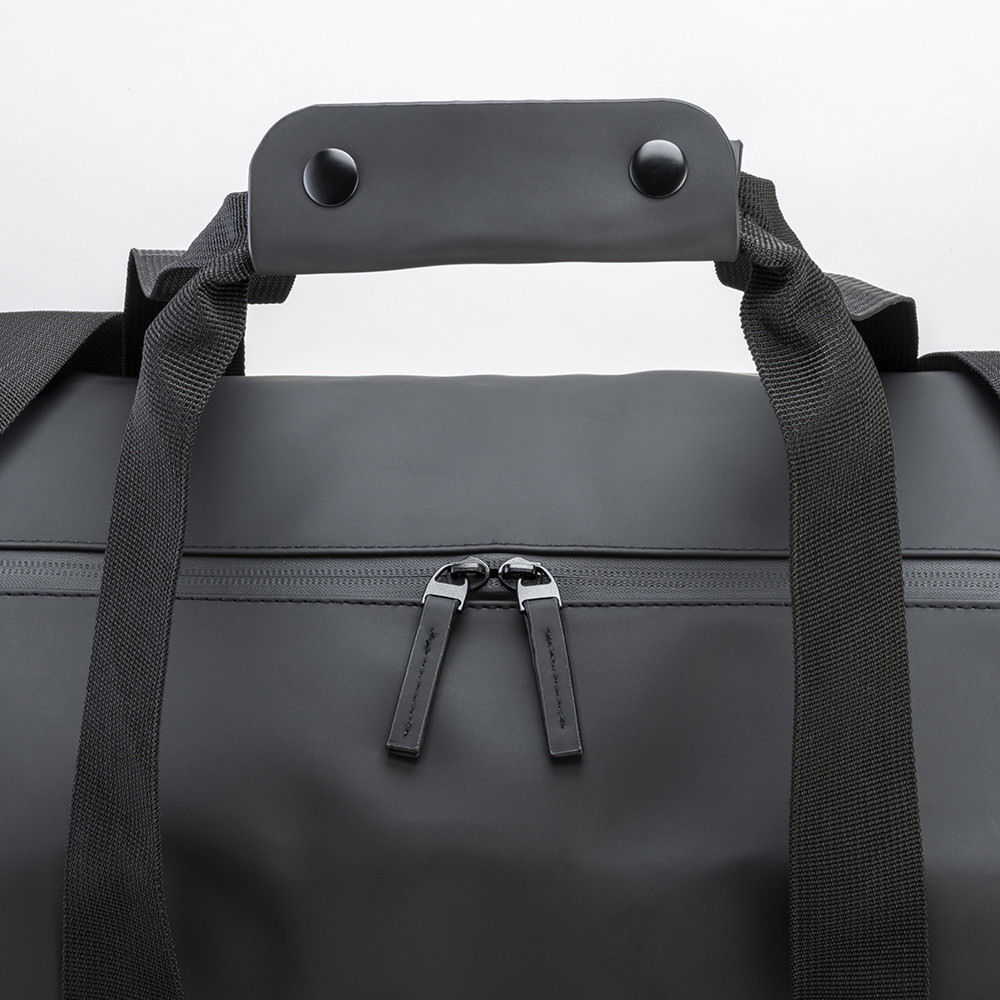 Αθλητική ή ταξιδιωτική τσάντα από πολυεστέρα 600D με μπροστινή τσέπη και ρυθμιζόμενο και αποσπώμενο ιμάντα ώμου.