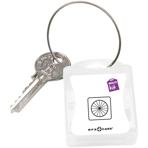 Το τέλειο σετ για κάθε ποδηλατική βόλτα. Μπορεί εύκολα να προσαρτηθεί στην τσάντα ή στο μπρελόκ σας, ώστε να μπορείτε να επισκευάζετε τα σκασμένα ελαστικά σας οπουδήποτε. Περιεχόμενα: 1 κιτ επισκευής. Όλα τα προϊόντα πρώτων βοηθειών και φροντίδας που περιέχονται στο κιτ πληρούν όλους τους ισχύοντες κανονισμούς της ΕΕ. Η τιμή περιλαμβάνει πλήρη έγχρωμη εκτύπωση. Πλαστικό.