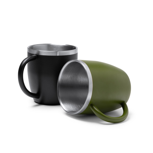 Κούπα από ανοξείδωτο ατσάλι διπλού τοιχώματος, με λαβή καραμπίνερ. Χωρητικότητα: 220 ml.