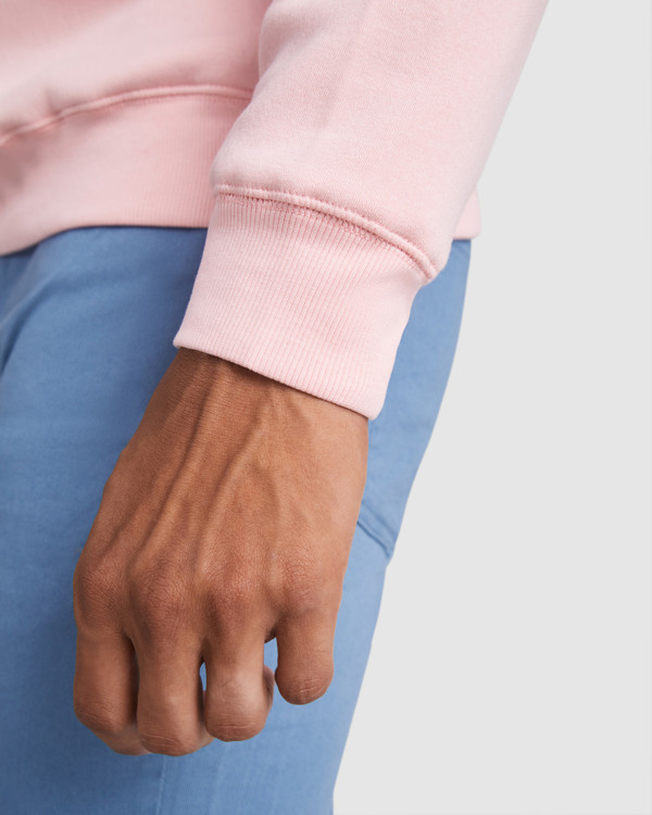 Unisex πουλόβερ από οργανικό χτενισμένο βαμβάκι και ανακυκλωμένο πολυεστέρα. Γιακάς, μανσέτες και στρίφωμα από ύφασμα με ραβδώσεις 2x1. Διακοσμητικές overlocked ραφές στους ώμους, τις οπές των βραχιόνων, τον γιακά, τις μανσέτες και το στρίφωμα. Ραφή μισού φεγγαριού στο εσωτερικό του πίσω γιακά.