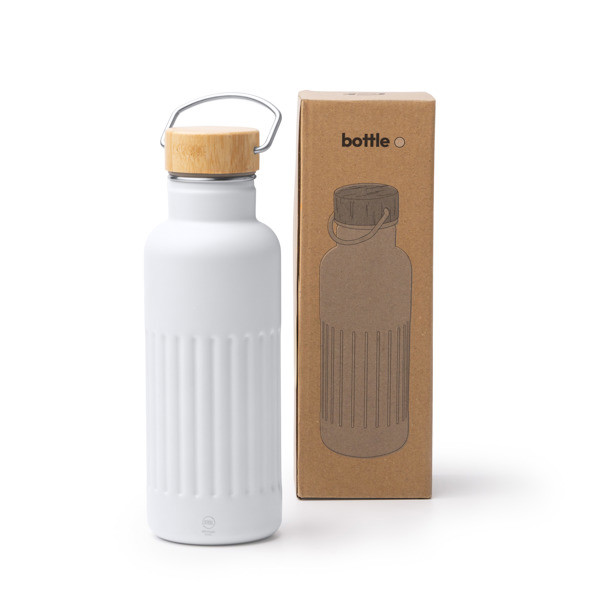 Θερμικό μπουκάλι από ανακυκλωμένο ανοξείδωτο ατσάλι 304 με διπλά τοιχώματα και καπάκι από μπαμπού. Χωρητικότητα: 500 ml. Παρουσίαση σε κουτί οικολογικού σχεδιασμού.