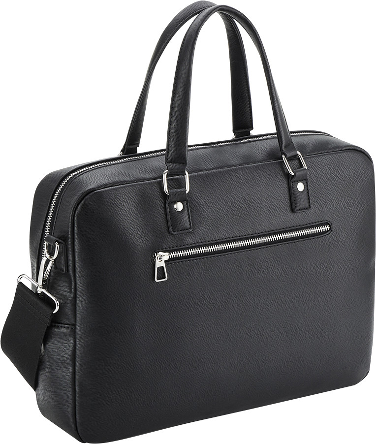 Τσάντα φορητού υπολογιστή από πολυεστέρα 360D 2 τόνων με ένα κύριο εσωτερικό διαμέρισμα για φορητό υπολογιστή 15 ιντσών και μία μπροστινή τσέπη με φερμουάρ. Περιλαμβάνει αποσπώμενο και ρυθμιζόμενο ιμάντα ώμου. Θήκη για καροτσάκι στην πίσω πλευρά.