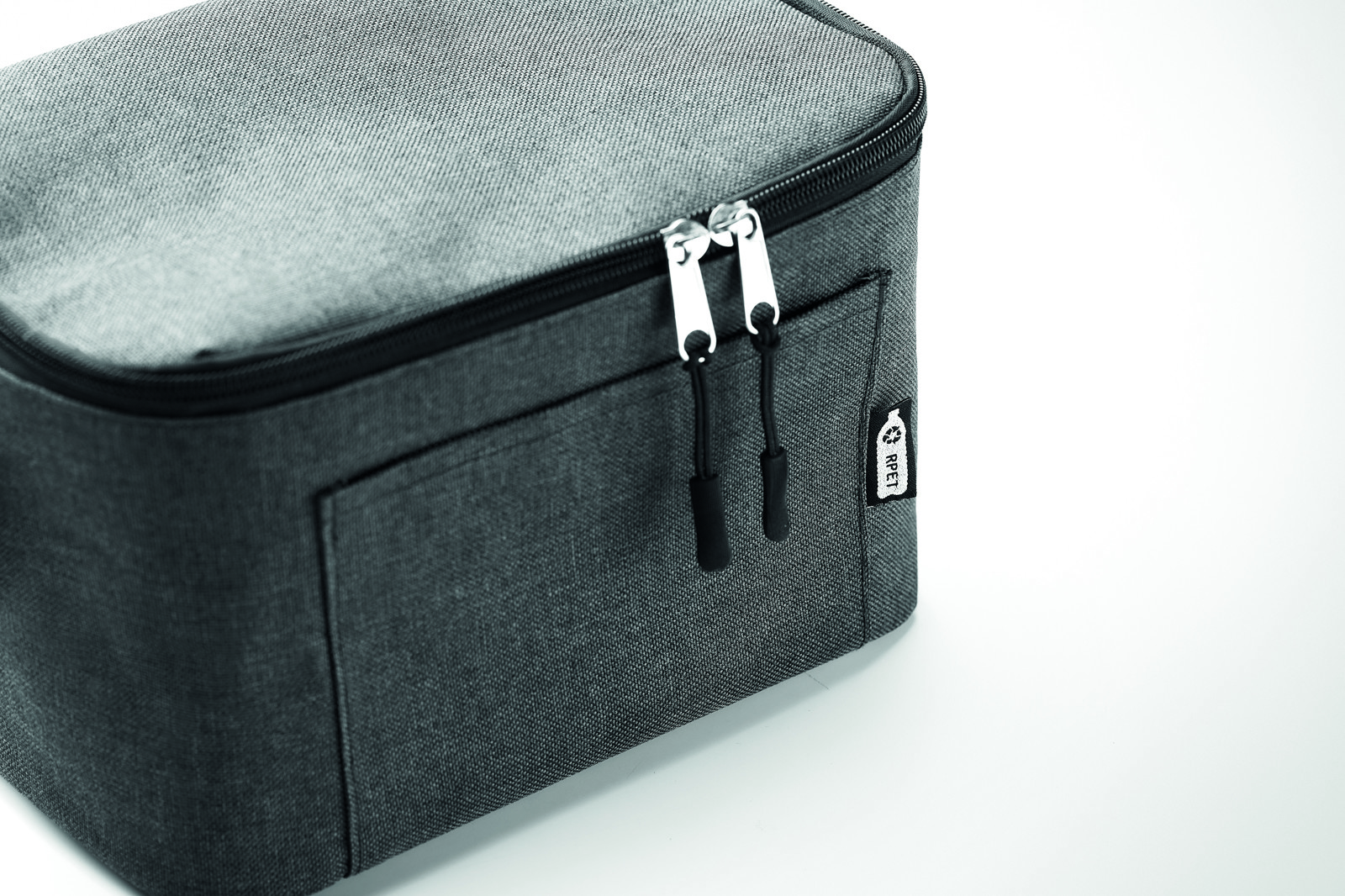 Τσάντα ψυγείου για 6 κουτιά σε 2 τόνους 600D RPET και μπροστινή τσέπη. Χωρητικότητα 3L. Υλικό απομόνωσης: 0.pEVA 15mm + αφρός 3mm.
