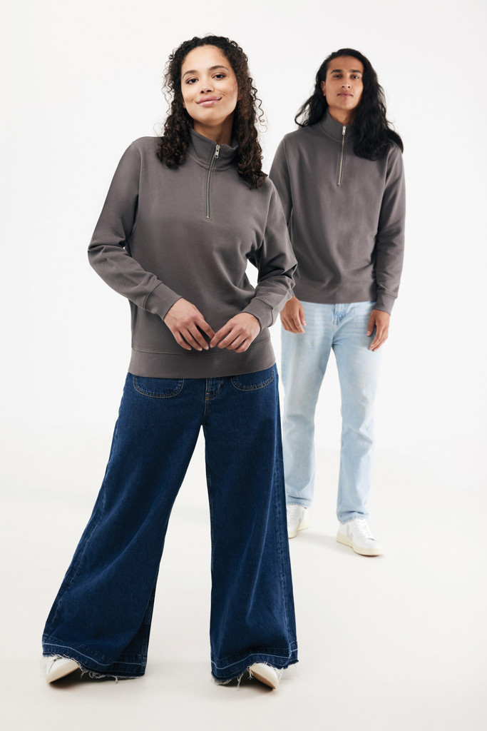 Unisex modern fit quarter zip sweater made from 100% cotton, of which 30% is recycled and 70% organic, in 300 G/M². The quarter zip sweater has a self-fabric collar, set-in long sleeves and 1x1 rib at cuffs and hem. The inside of the fabric is French terry. The use of genuine recycled & organic fabric materials and environmental impact claims are guaranteed, by using the AWARE™ disruptive physical tracer and blockchain technology. By scanning the QR code, you will gain access to a dedicated digital passport of the product. 2% of proceeds of each sold product will be donated to Water.org. This product is OEKO-TEX® STANDARD 100 Centexbel certified. Due to the nature of recycled yarns, impurities and colour variations may appear.