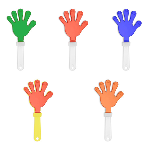 Χειρολαβή δύο χρωμάτων σε σχήμα χεριού με λαβή. Ιδανικό για εκδηλώσεις και γιορτές.