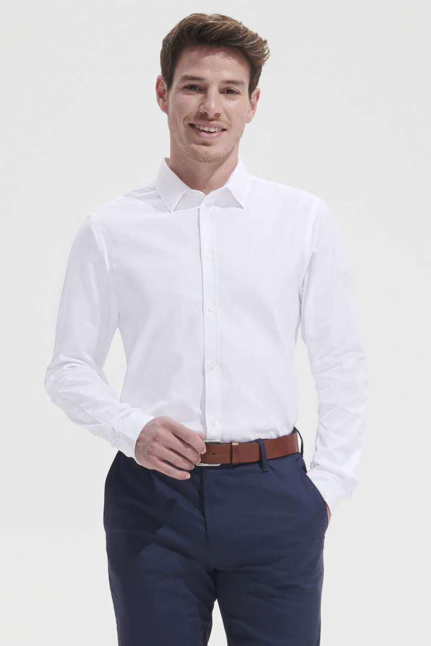 Ποιότητα;97% βαμβάκι - 3% ελαστάν;Στυλ;Εφαρμοσμένο κόψιμο;Μακριά μανίκια;Γιακάς με ένα κουμπί;Μανσέτες με 2 κουμπιά και δεμένη σχισμή;7 κουμπιά σε έναν τόνο,
