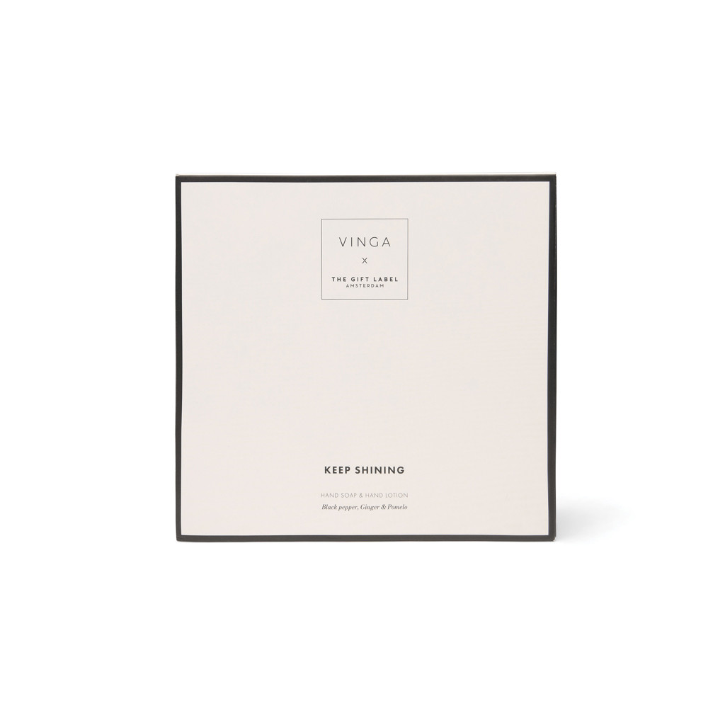 Silky smooth hands, every day. Take care of your hands with this beautifully scented unisex set, featuring two 200 ml bottles of hand soap and hand lotion. With the warm, zesty aroma of black pepper, ginger and pomelo it leaves your hands feeling smooth, nourished and subtly fragranced. A touch people will remember. Elegantly packed in a giftbox in cream white and black.