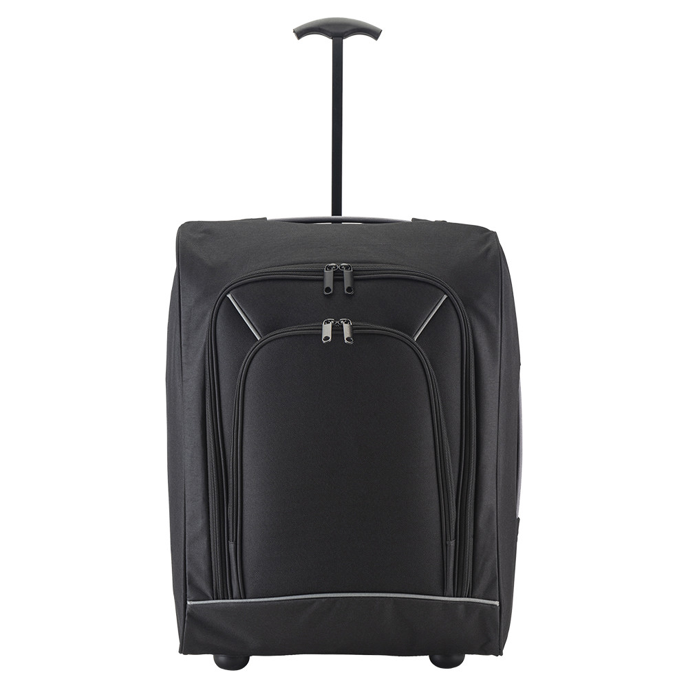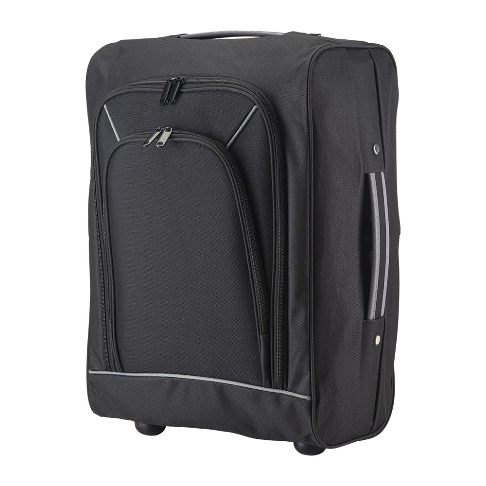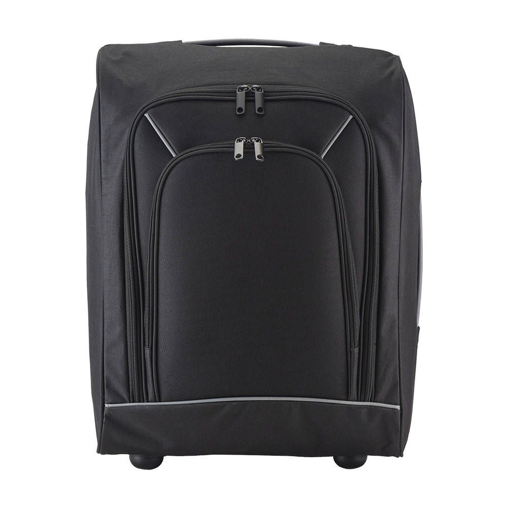 600D RPET Polyester soft side cabin trolley. Including exterior zipped laptop compartment. Zipped front pocket. Combi lock. Bottom compartment with ribbons.