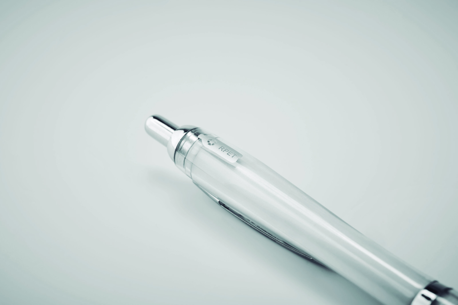 Push button ball pen in RPET. Blue ink.