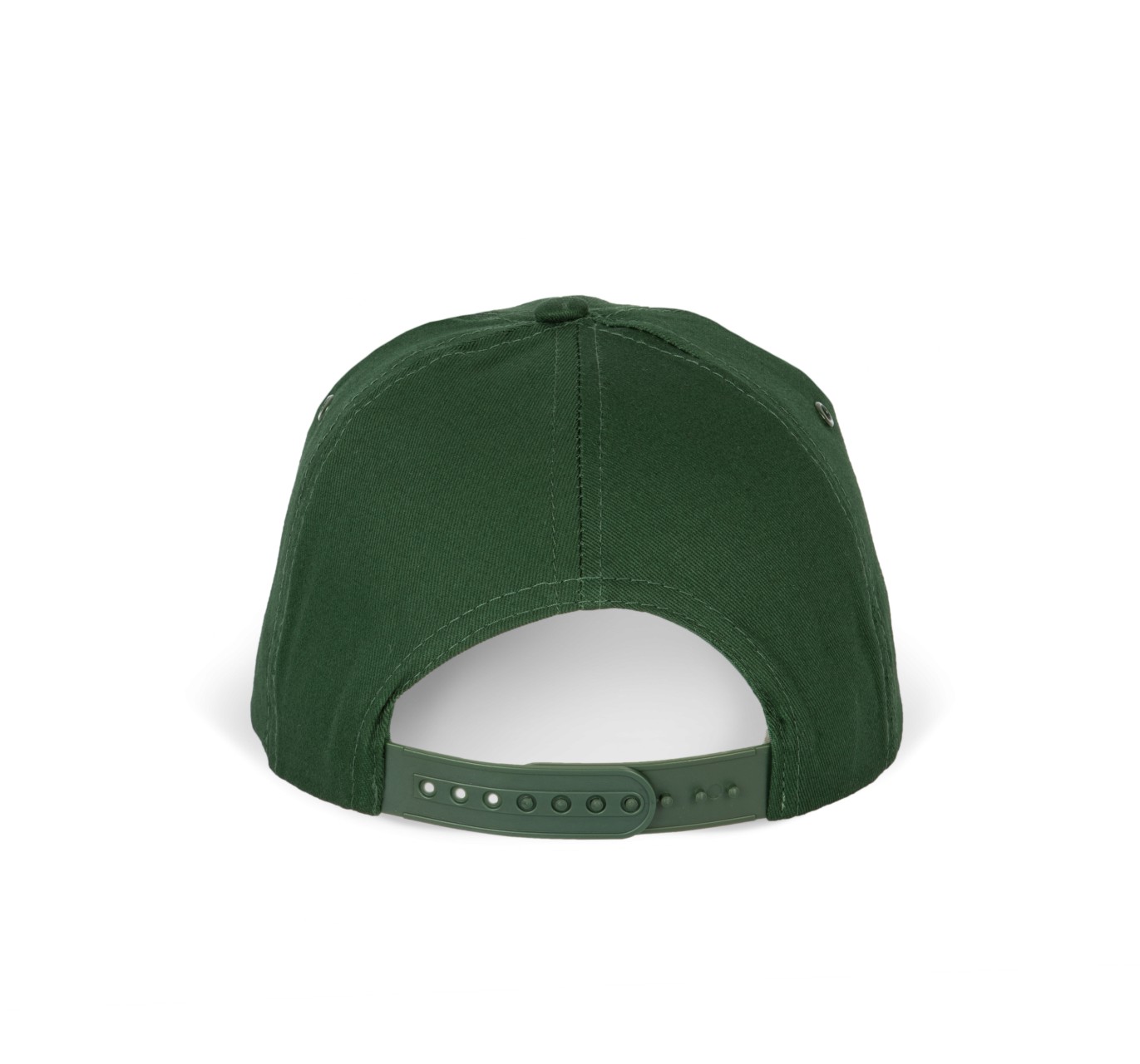 5 panel baseball cap in cotton twill 160 gr/m2 with adjustable plastic snap closure. 2 metal eyelets with matching colour plating. Size 7 1/4.