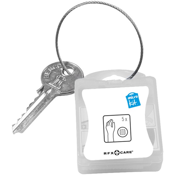 The ideal plaster kit to be prepared for small accidents. Attach it to your bag or keychain and you will always have it with you. Contents: 5 blank round plasters. All of the first aid and care products within the kit meet all applicable EU regulations. Price includes full colour print. Plastic.