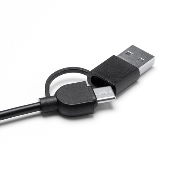 Pen holder with foldable cup warmer made of bamboo. Keep your drink at an ideal temperature. 1 m cable with USB and Type C output. Presentation in eco design box.