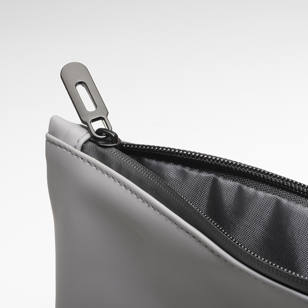 Cosmetic bag in microfiber and PVC 6 Phthalate free, with wrist handle.