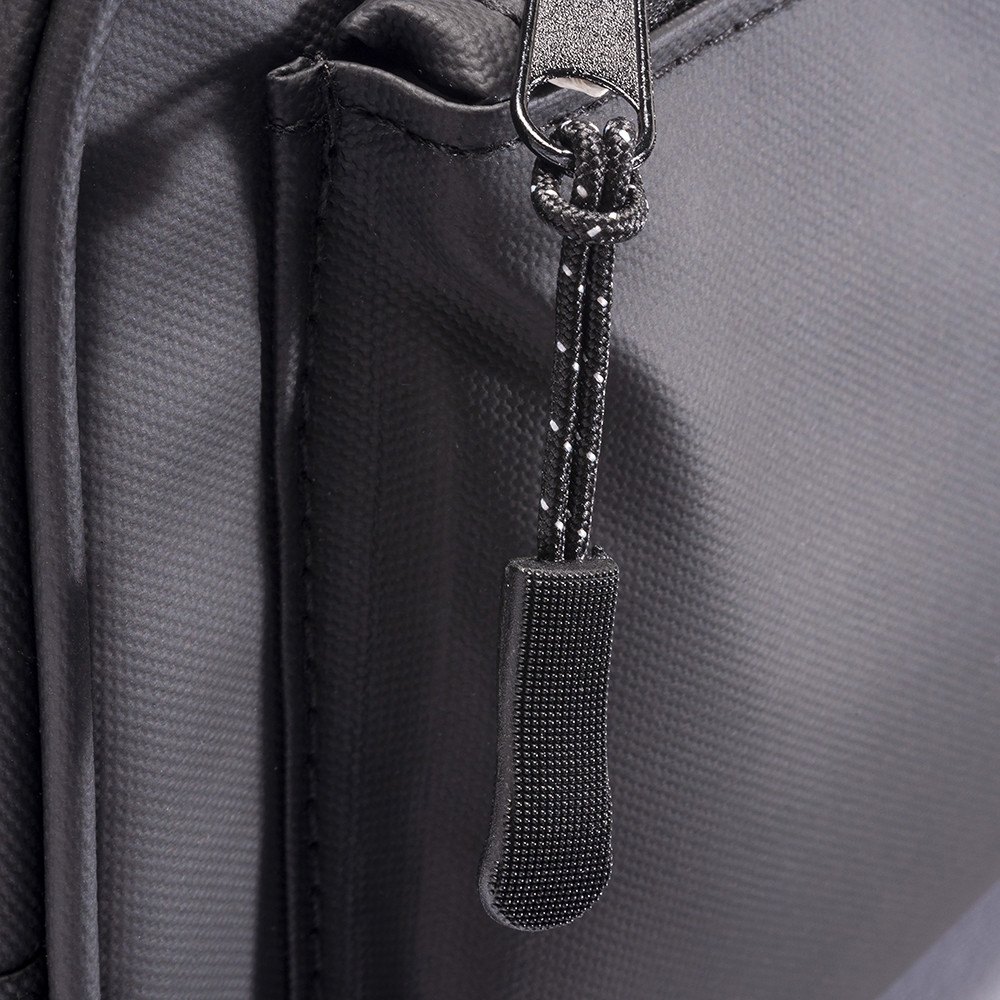 Cross body bag in 600D RPET polyester. Padded main compartment with RPET mesh pocket and zippered front pocket. Adjustable strap and separate handle.